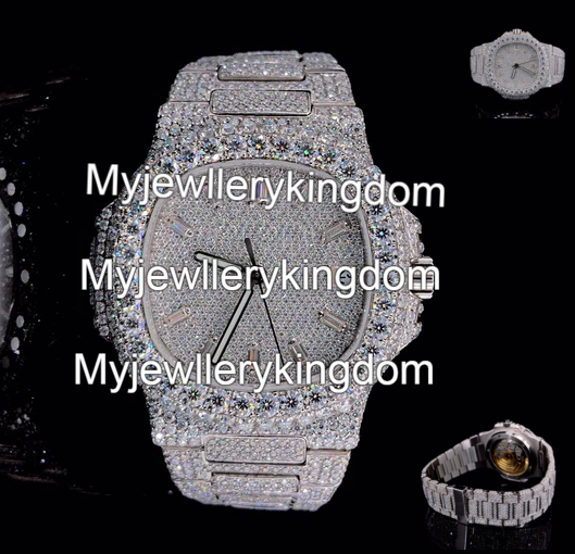 Montre de luxe haut de gamme en acier inoxydable avec boîtier en moissanite, résistante à l'eau 10 bars, verre cristal (sans mouvement) - Nouveauté très demandée