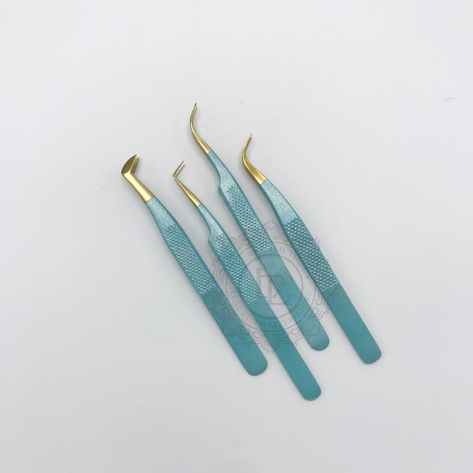 Vente chaude Haute Qualité En Acier Inoxydable Pince À Épiler Lite Vert Argent Paillettes Poudre Revêtement avec Nouvelle Poignée et Point D'or