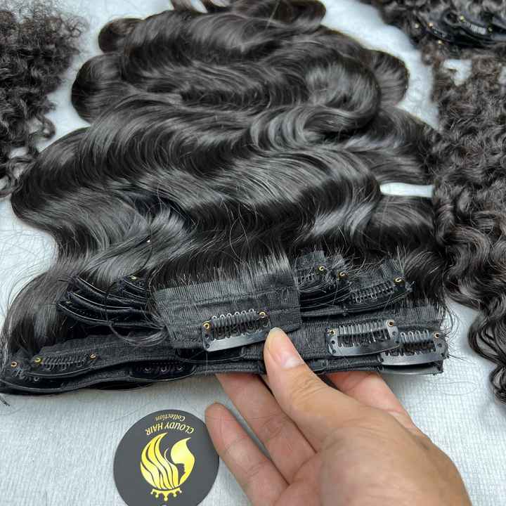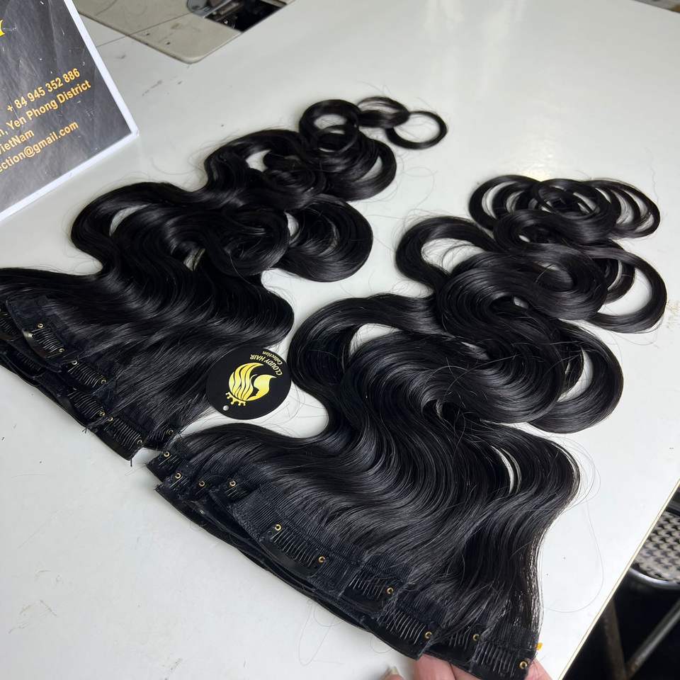 Cheveux humains naturels non traités non-Remy, qualité supérieure, texture alignée, ondulés, avec clip, origine Vietnamienne, vente chaude
