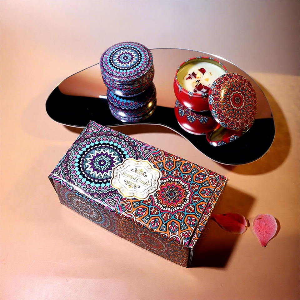 Nom du produit:Coffret cadeau de bougies parfumées en pot de fer blanc