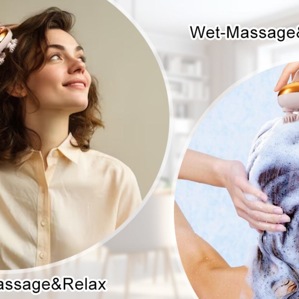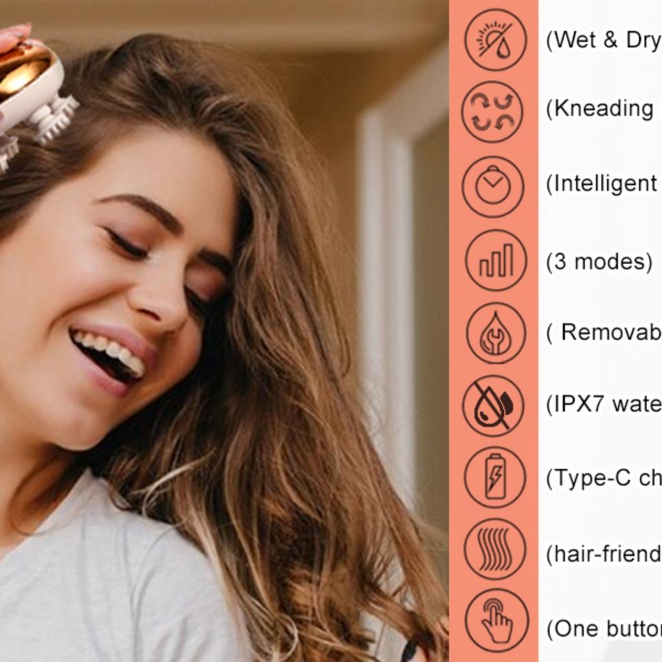 Masseur de tête électrique IPX-7 étanche en silicone, masseur de cuir chevelu à pétrissage, alimenté par batterie, pour usage domestique – Vente chaude