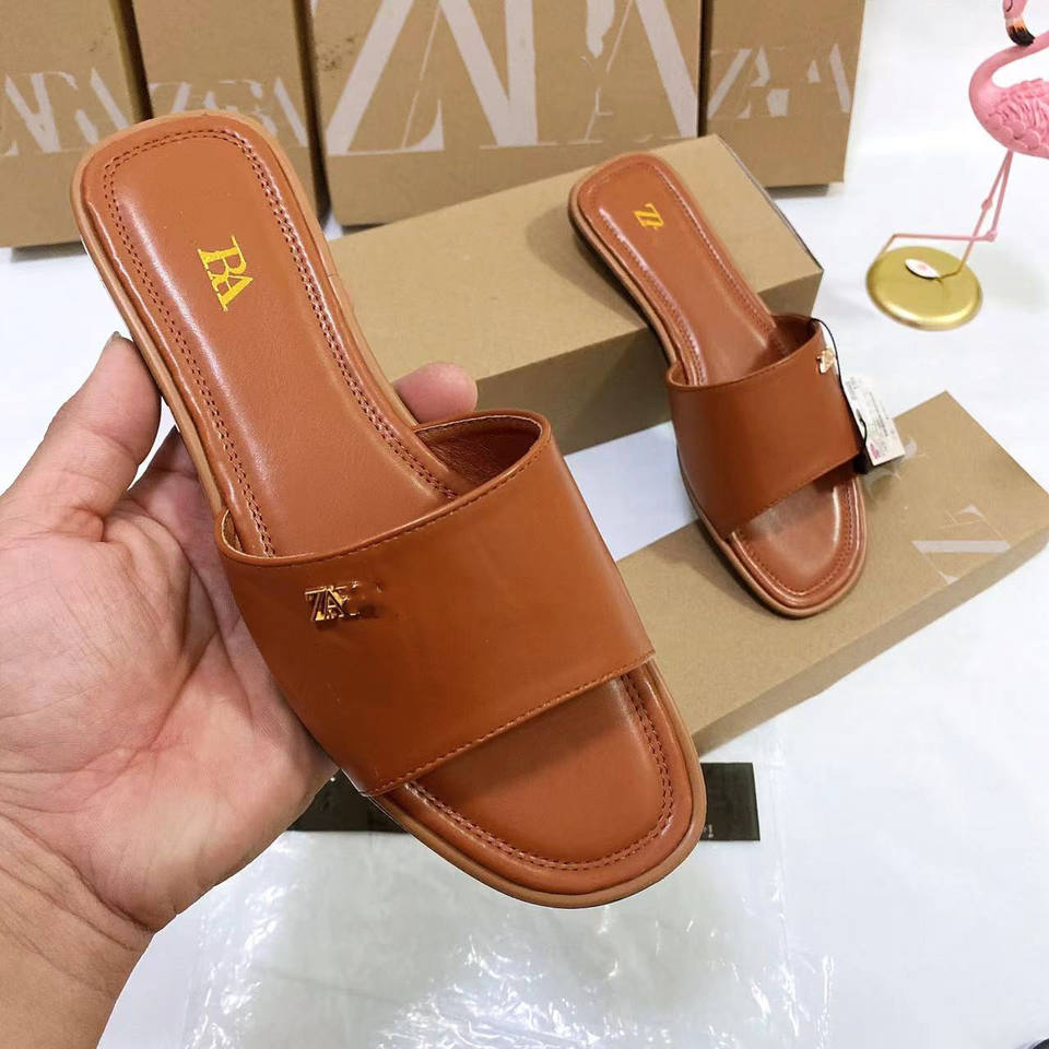 Sandales plates d'été à la mode, en stock, avec inscription simple et boucles métalliques, légères, chaussures de luxe pour femmes, pantoufles