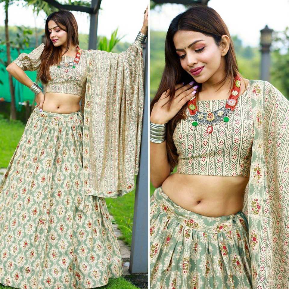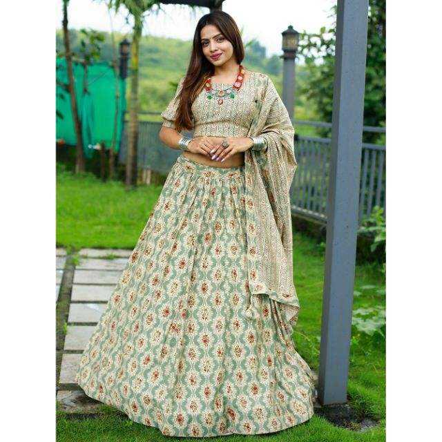 Product Name:Chinon Cotton Lehenga Choli With Dupatta With Print And Foil Work