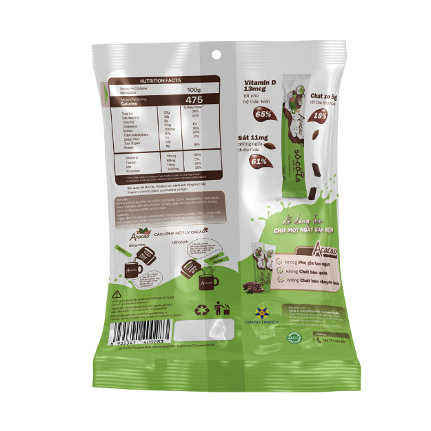 Chocolat instantané en poudre Acacao-lait de coco goût