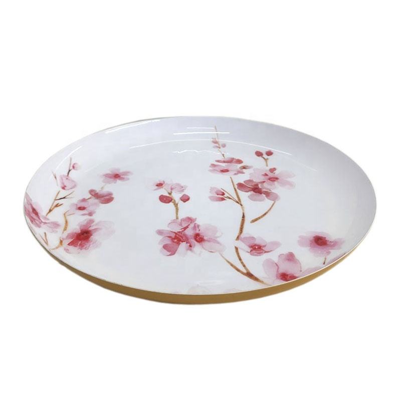 Autocollant d'assiette ronde en fer émail et laiton couleur or plat et plateau de Style moderne pour le service et la décoration