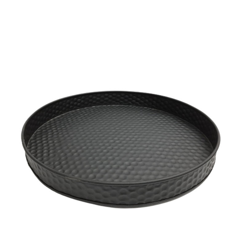 Plateau rond en fer de vente chaude avec plateau de service de conception de luxe de couleur noire martelée pour la décoration de dessus de cuisine et de table