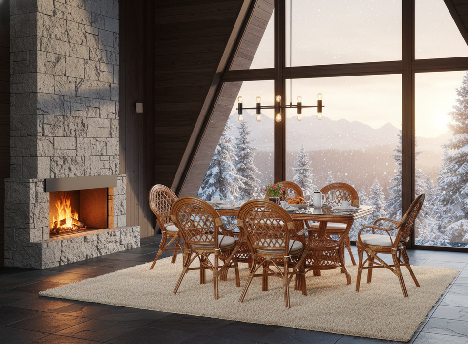 Ensemble de salle à manger JAVA très vendu, design inspiré de Java, goût traditionnel, ensemble de salle à manger confortable, table longue, rotin fait main, hôtel, villa