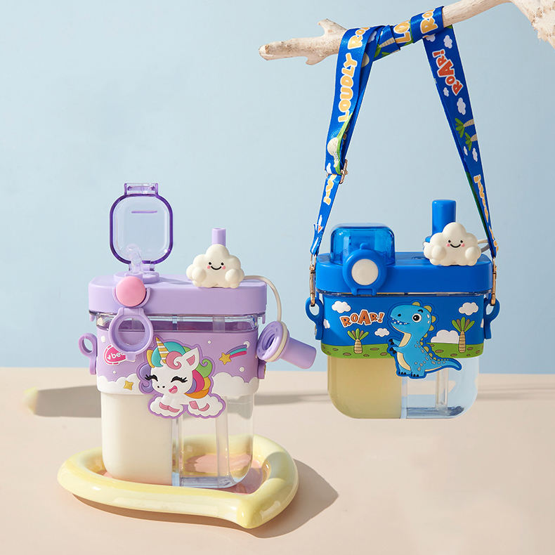 Product Name:Dual Compartments Leak Proof Plastic Drinking Bottle for School Kids