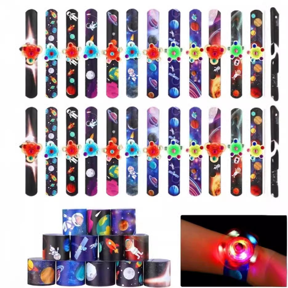 Bracelet lumineux LED à succès pour enfants, bracelet lumineux en plastique Pop It, fidget spinner, cadeaux de fête d'anniversaire