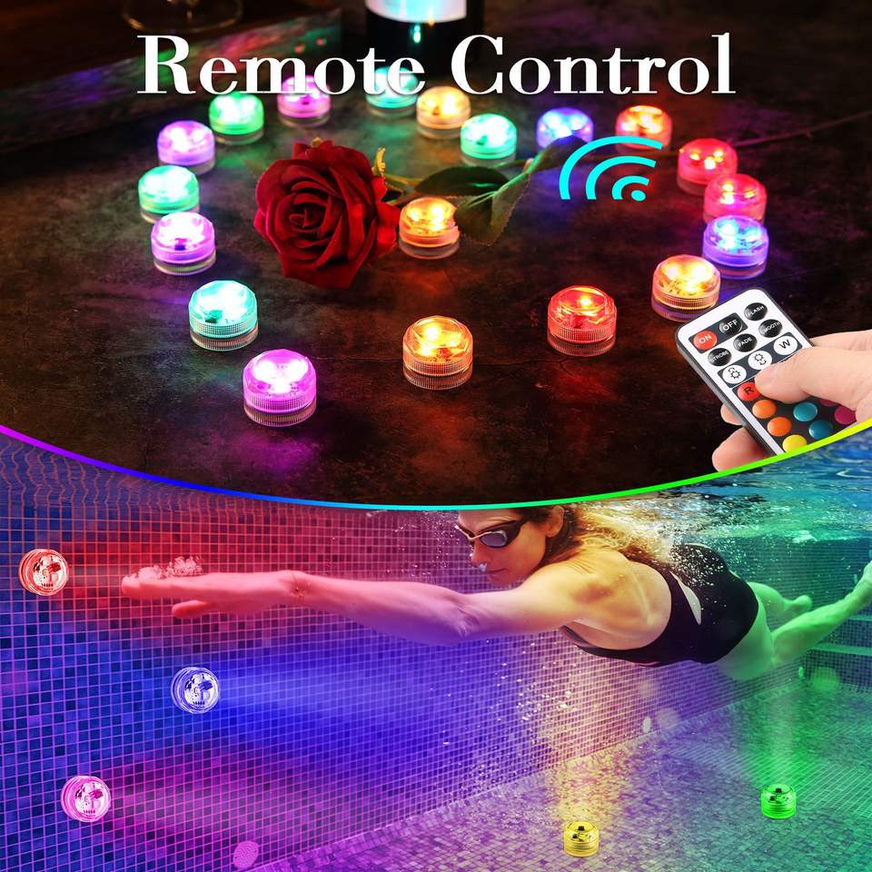 Hot-Selling LED Submersible Bouton Type 40 Heures Coloré Fish Tank Lumière Décorative IP68 Atmosphère Étanche Piscine Lumières