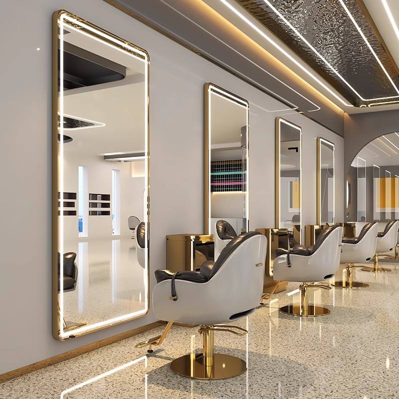Offre spéciale Miroir mural à LED pour salon de coiffure Bureau de coiffeur simple avec lumière pour meubles de salon Miroir de coiffure
