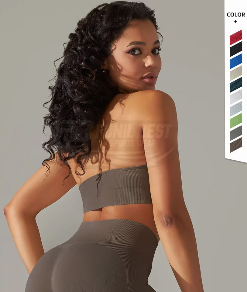 Ensemble 2 pièces soutien-gorge de sport respirant et écologique sans coutures gris clair et rouge uni pour femme, haute qualité, vente en gros, idéal pour la gym - Nouvelle collection à succès