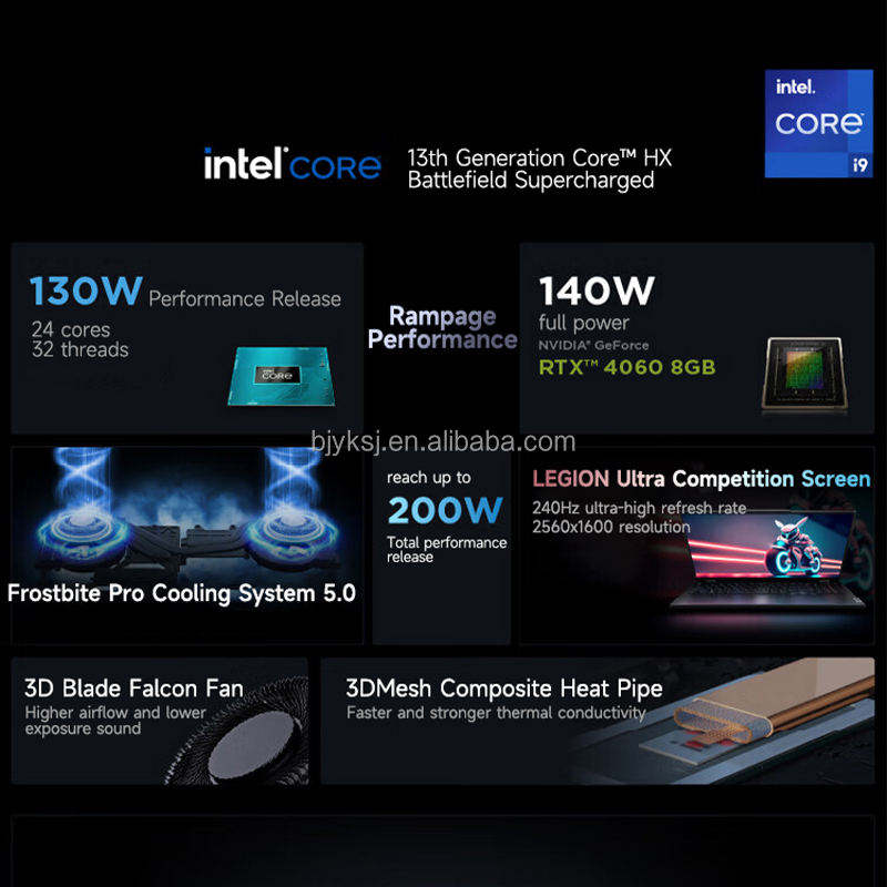 Ordinateur portable en vente chaude L e n o v o L e g i o n Y9000P I n t el Core I9-13900HX 32 Go 1 To 8G-RTX4060 16 pouces 240Hz Ordinateur portable de jeu