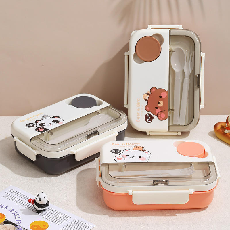 Boîte à lunch grande capacité à compartiments, motif panda de dessin animé, pour étudiants et travailleurs, compatible micro-ondes, vente chaude