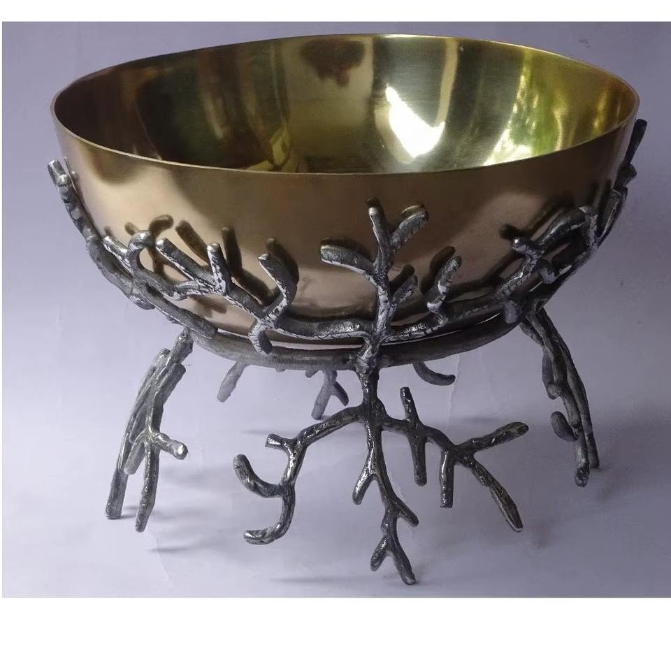 Bol rond en métal en forme de feuille de vente chaude avec un design minimaliste dans une base en aluminium fini rustique décor à la maison décor pièce maîtresse