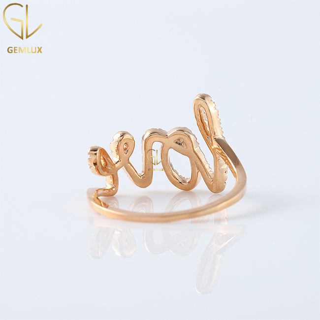 Hot Selling Love Script Ring Bling Bling Vintage Cursive Letter Love Moissanite Diamond Ring Promise Ring