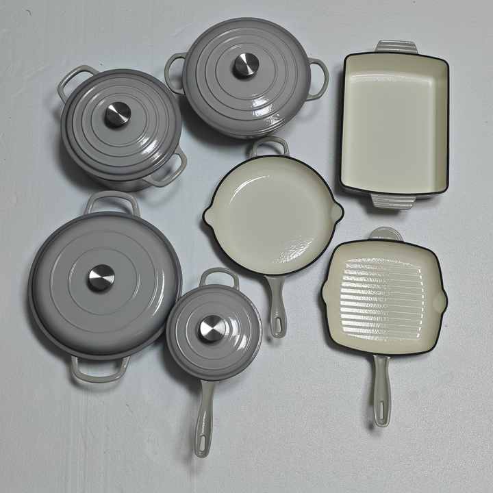 Ensemble de casseroles en fonte émaillée de luxe à vendre - Ensemble de 7 pièces de différentes tailles Accessoires de cuisine Ensemble de casseroles pour le Ramadan