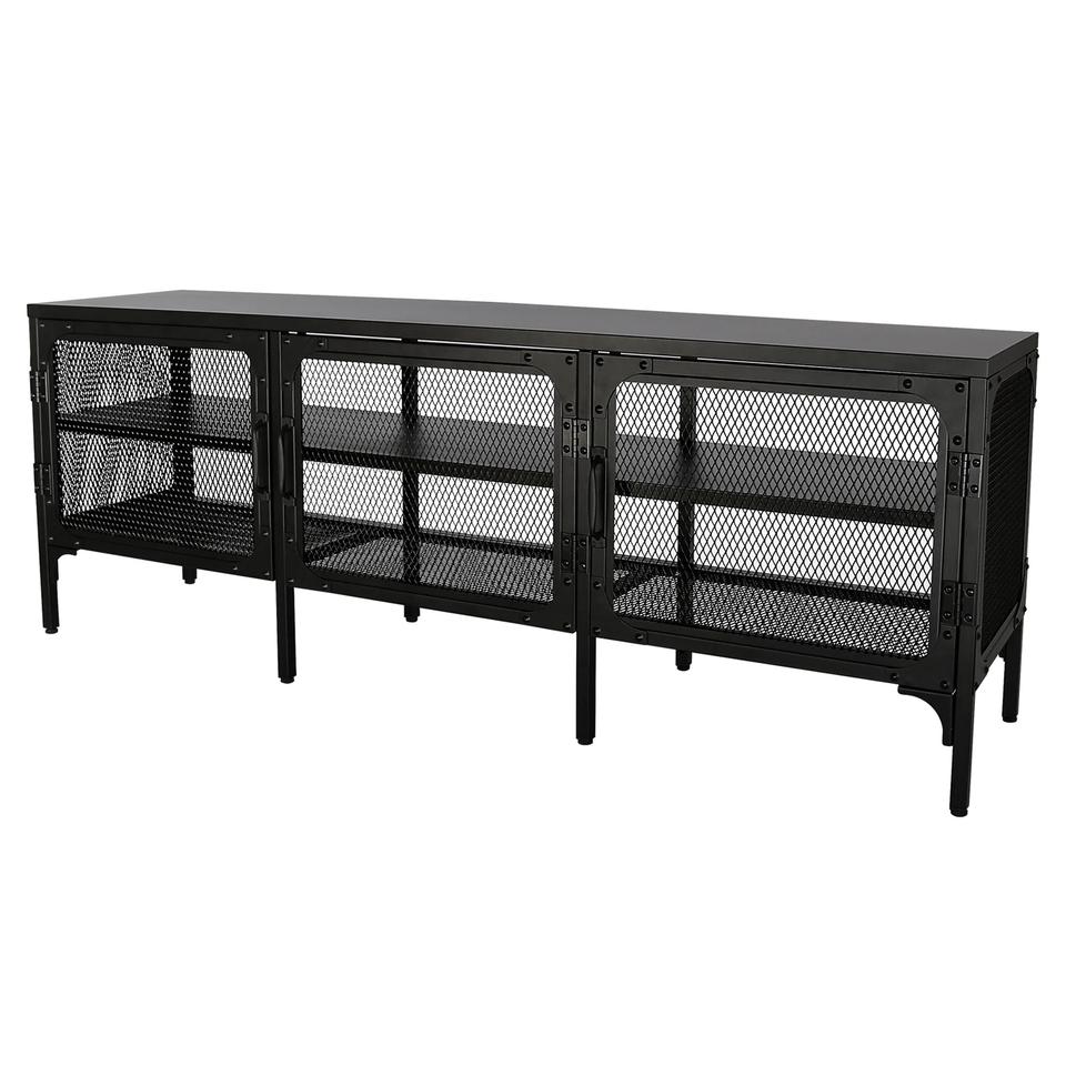 Table de stockage de luxe de vente chaude avec portes en verre Console d'incrustation d'os en métal enduit de poudre pour la maison hôtel prix d'usine direct