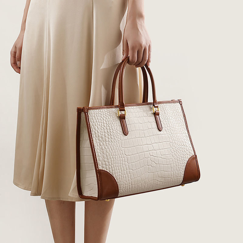Product name:Croco White Vegan PU Tote Handle Bag