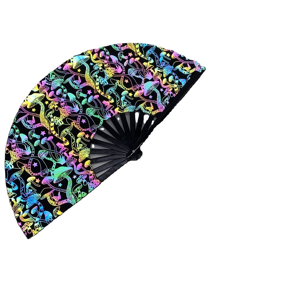 Éventail Réfléchissant Holographique Iridescent « Magic Mushroom » – Sac de Transport Grande Taille pour Éventail à Main – Vente Flash