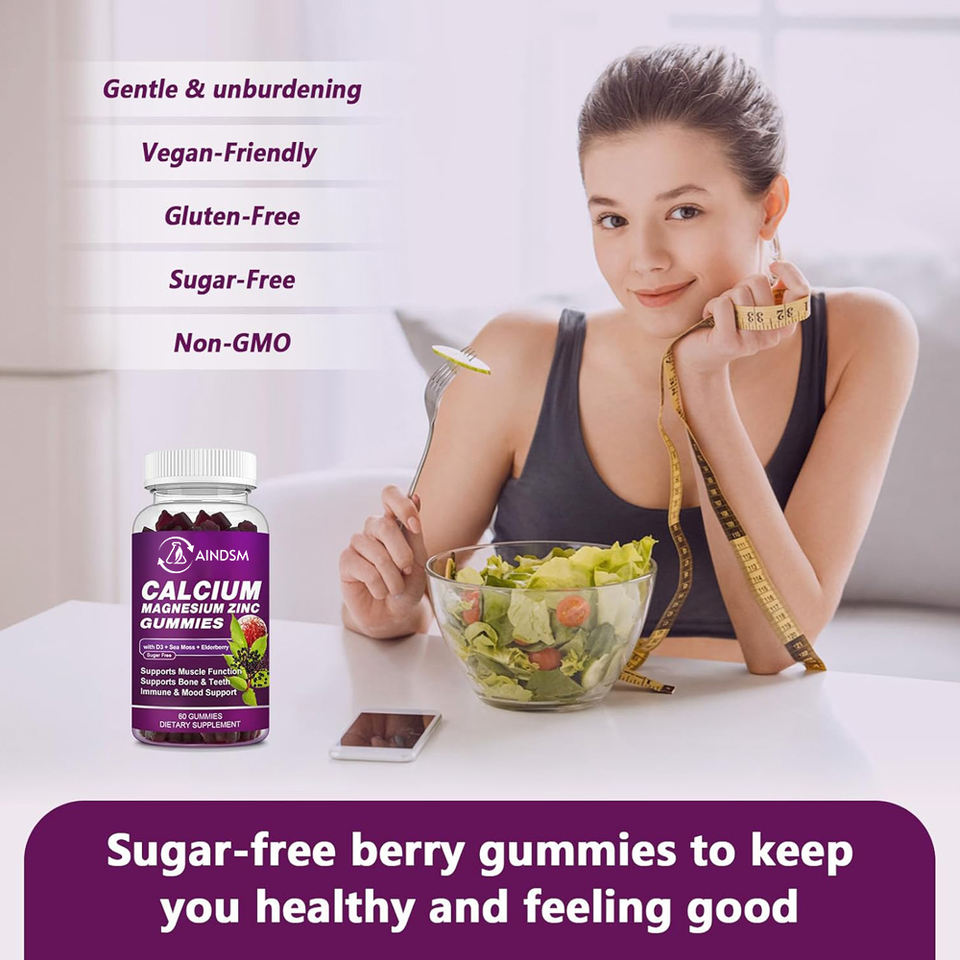 Gummies de soutien immunitaire au magnésium et au calcium, très vendues, véganes, gummies au magnésium, magnésium Ca vitamine zinc, soutien à la santé des os, gummies
