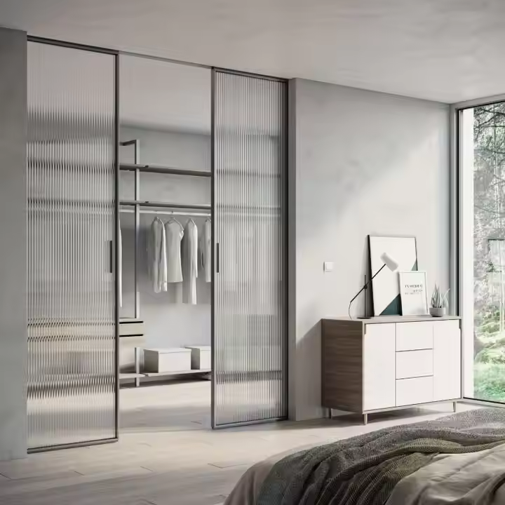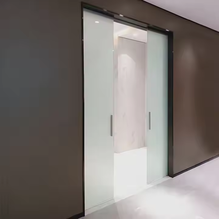 Porte coulissante automatique magnétique de vente chaude Double portes coulissantes en aluminium de cadre étroit de verre trempé