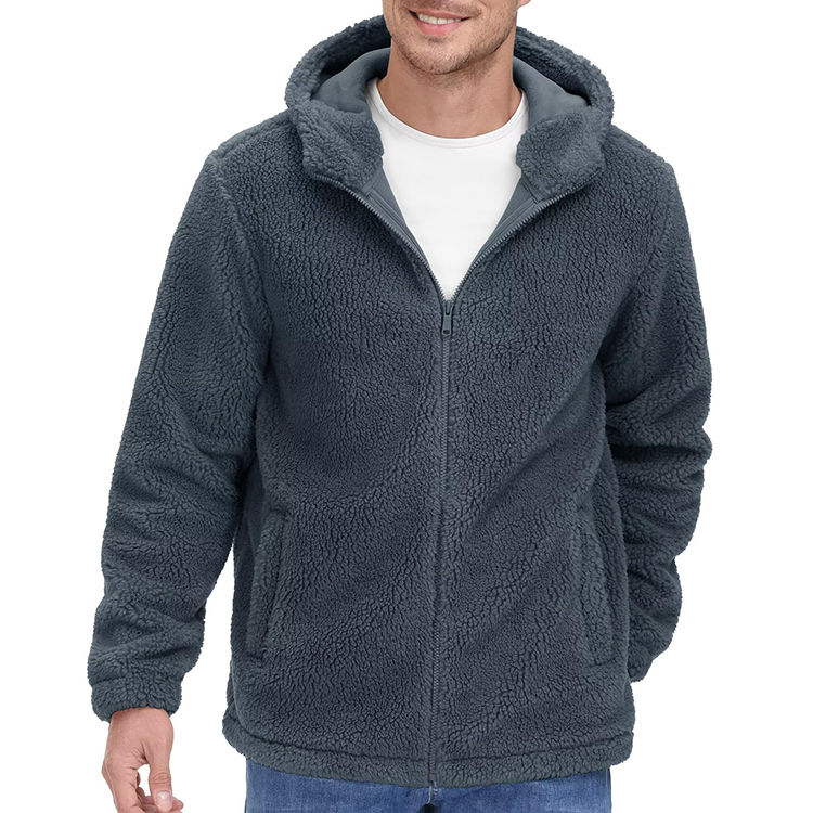 Veste en polaire sherpa pour homme, style décontracté, vente chaude, hiver, chaude, respirante, broderie de logo personnalisée, col montant