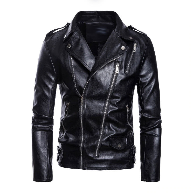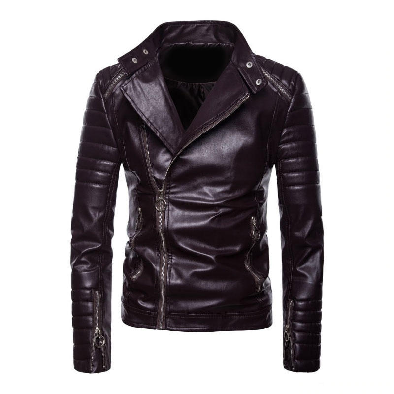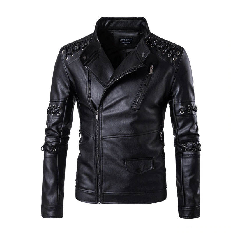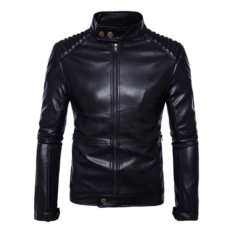 Blouson Moto Homme en Cuir PU Brodé Uni, Coupe Slim, avec Poches Zippées – Tendance Hiver Automne – Meilleure Vente