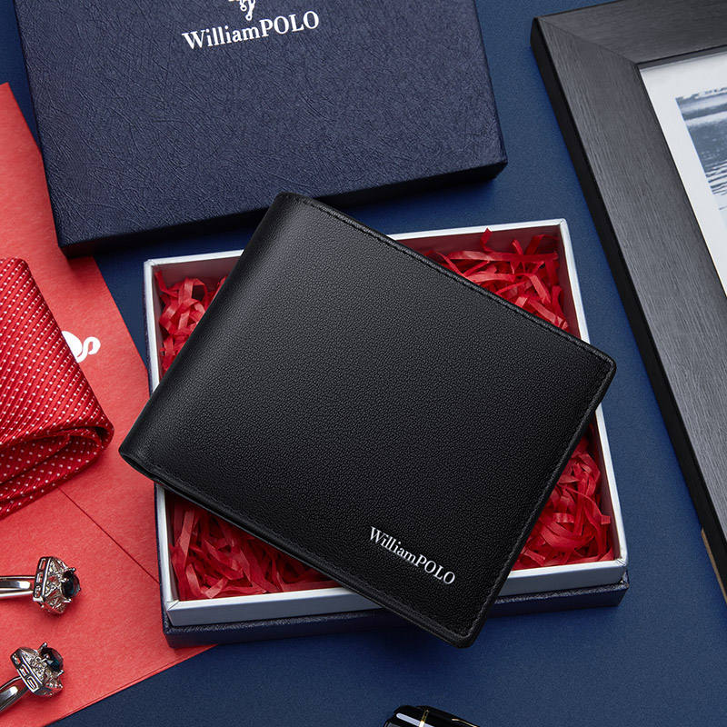 Hot Selling Men's Short Wallet Black Leather RFID Card Holder with Hasp Classic Coin Purse Open Closure Type Wholesale