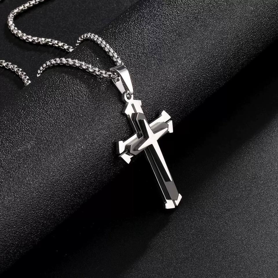 Collier de prière pour homme en acier inoxydable, avec pendentif croix, argent, noir, or, chaîne maille forçat étanche, ne ternit pas, idéal pour un cadeau - Vente chaude