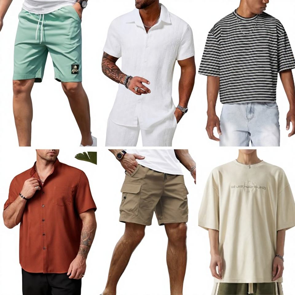 Vêtements d'été pour hommes en promotion : T-shirts à manches courtes, pantalons et polos pour hommes, assortiment aléatoire.
