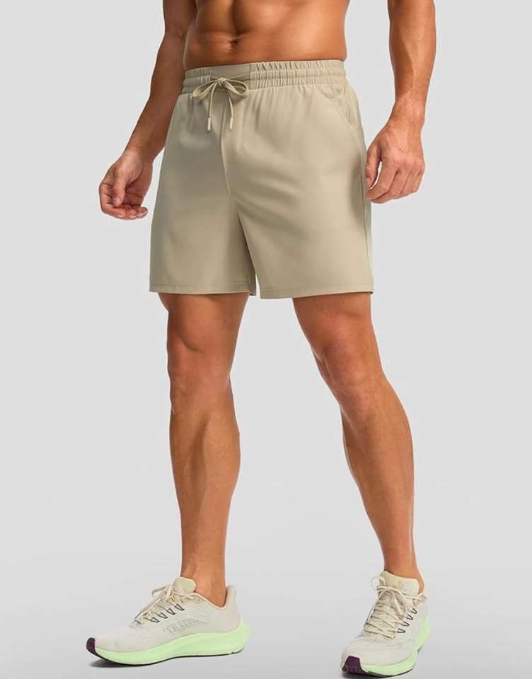 Vente chaude hommes sportif poche oblique Fitness Shorts solide maille respirant séchage rapide décontracté taille élastique mi toile matériel