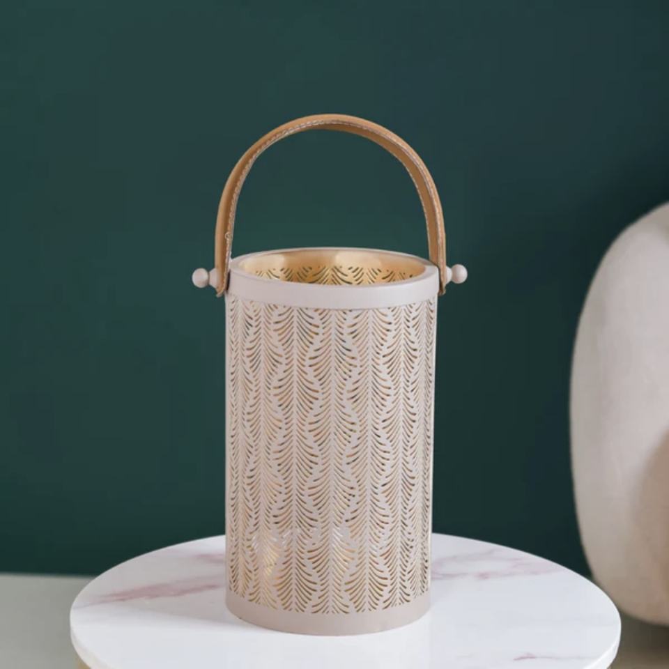 Bougeoir votif de style marocain en métal de vente chaude avec conception personnalisée et poignée en cuir pour les décorations pour la maison