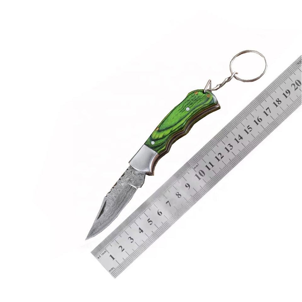 Hot Selling Mini Folding Keychain Damascus Steel Blade Pocket Knife Small Hanging Mini Folding Knives Keychains