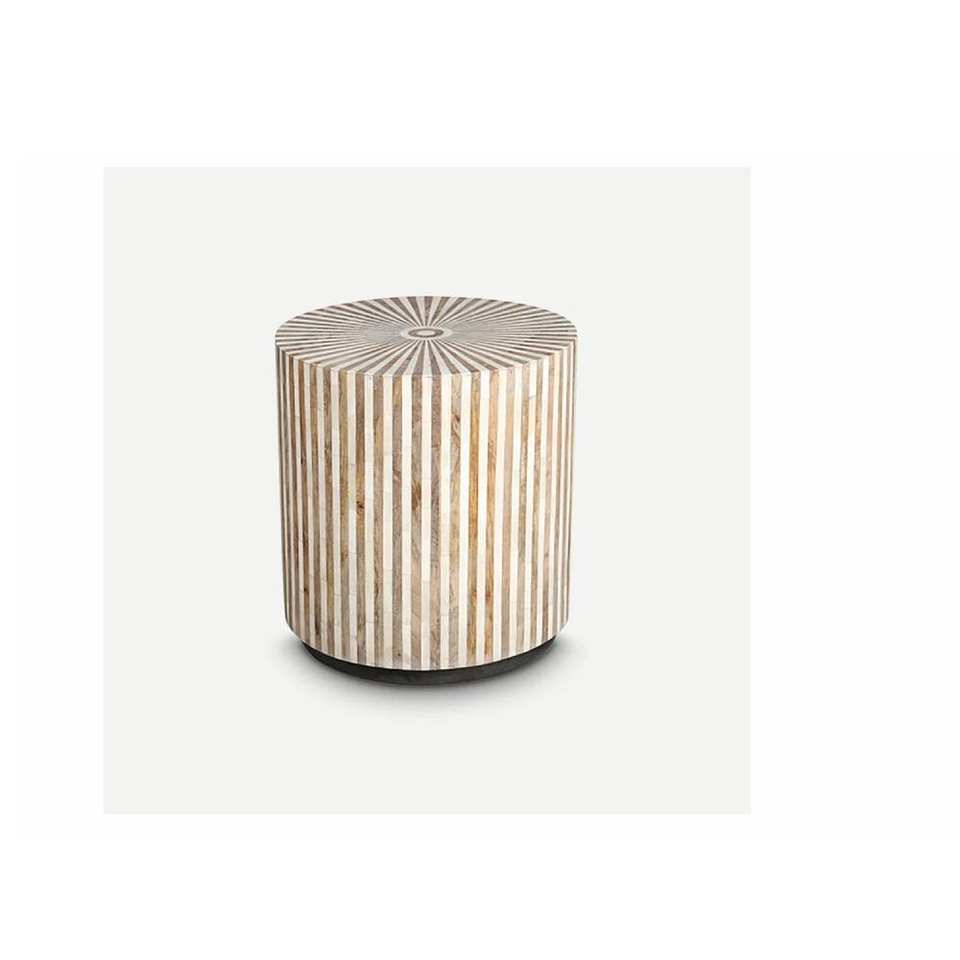 Offre spéciale Table d'appoint ronde en incrustation d'os au design moderne Tabouret d'appoint en forme de tambour fait à la main Table basse Table d'appoint ronde en incrustation d'os élégante