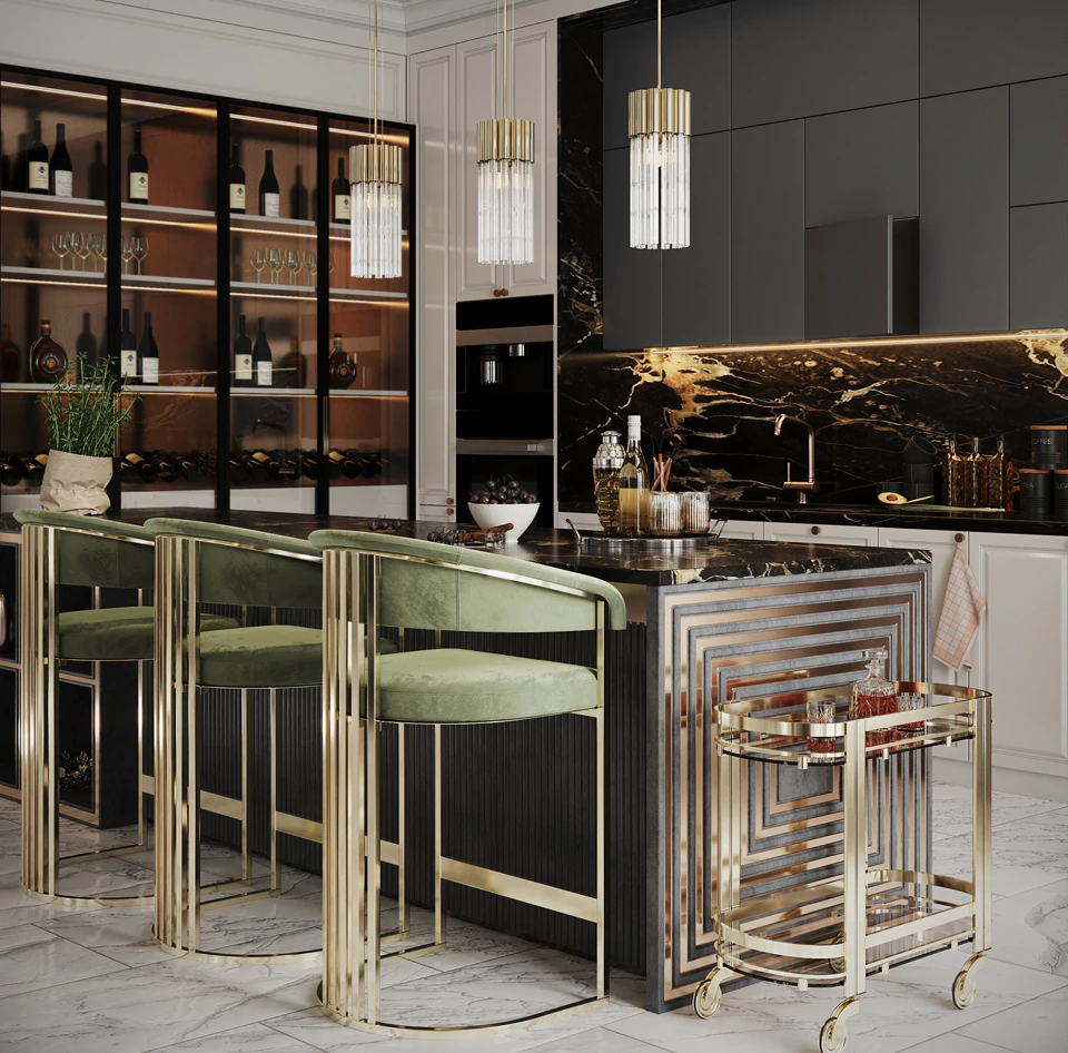 Best-seller Tabourets de bar en velours au design moderne Chaise de comptoir pour salle à manger Mobilier de salon Chaise de bar club pour hôtel, fêtes et événements