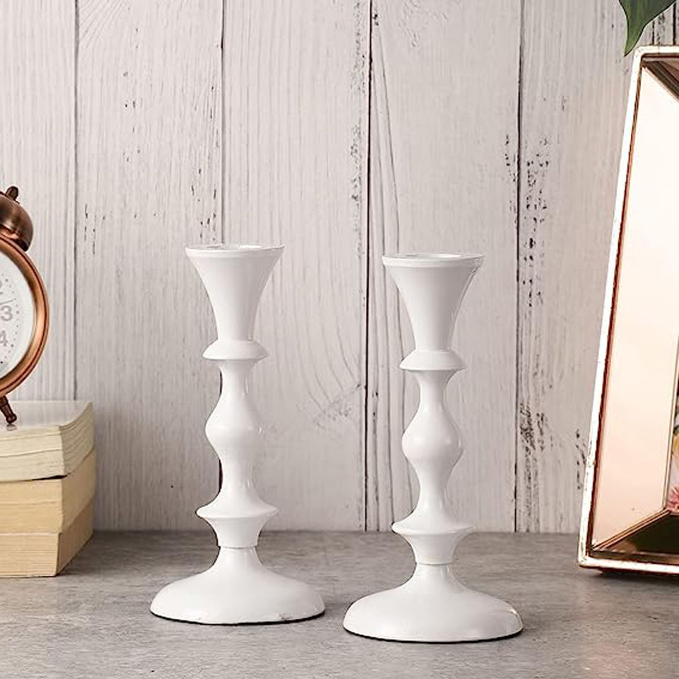 Vente chaude Design Moderne Blanc Enduit En Aluminium Bougeoir Nouvelle Arrivée De Mariage Décorer Stand Meilleur Prix De Gros