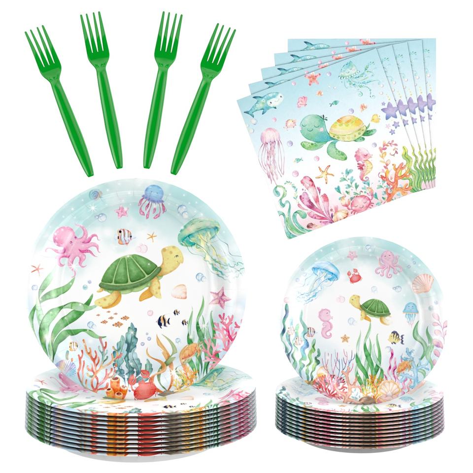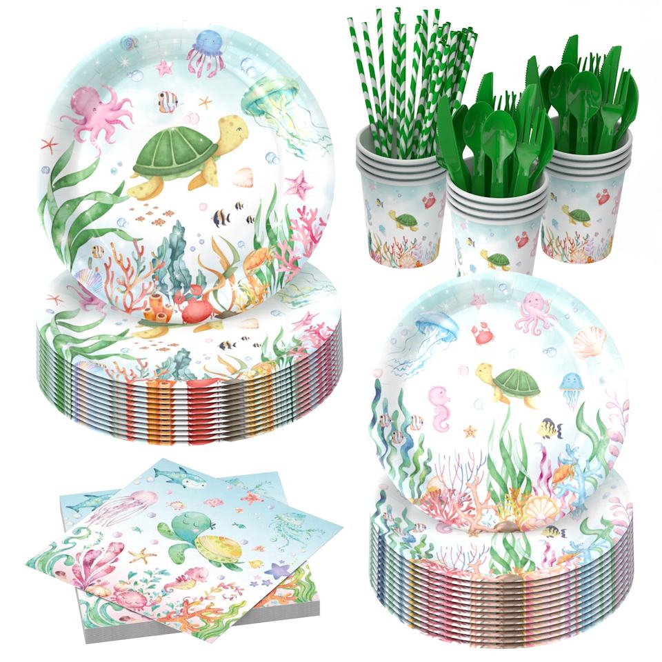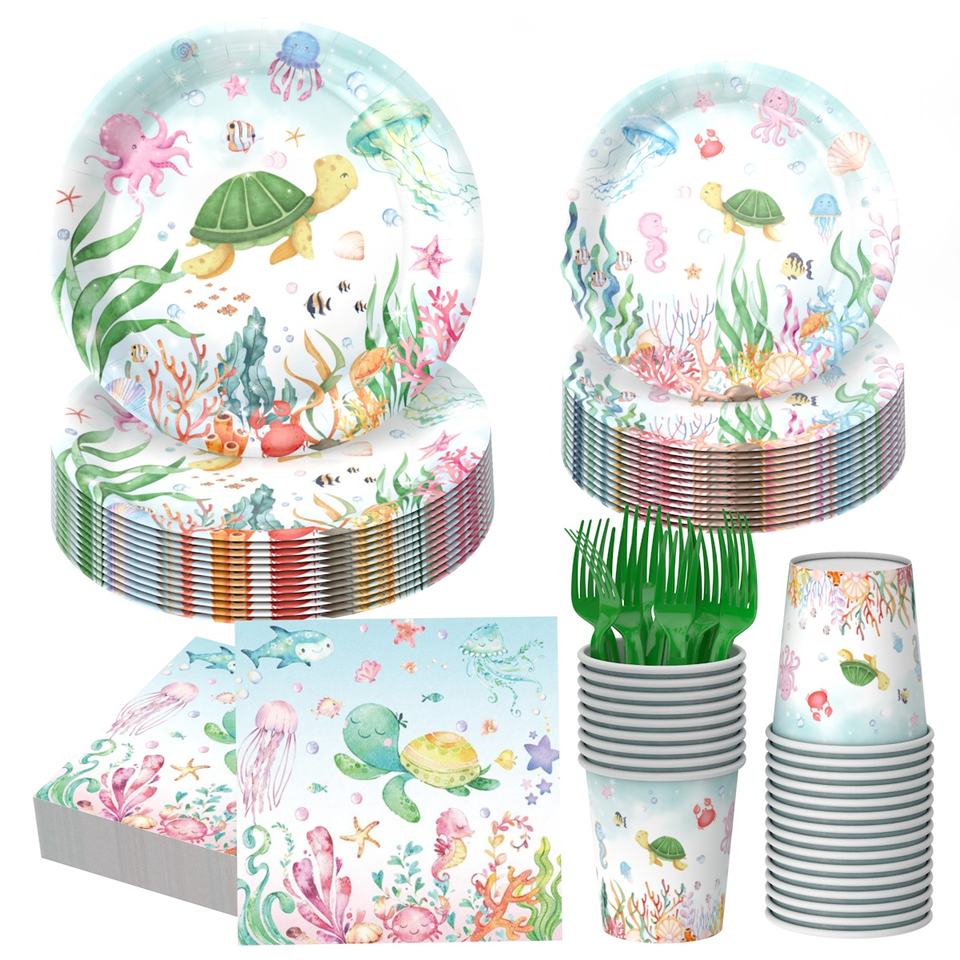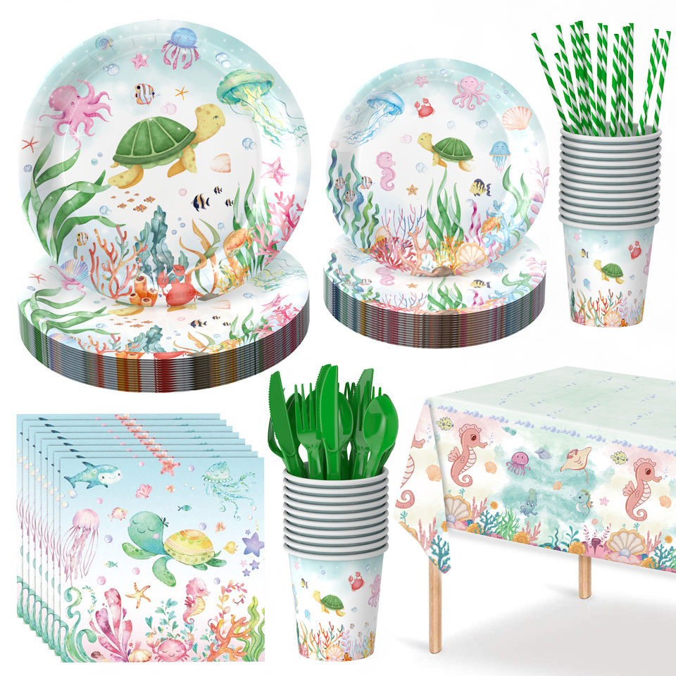 Nom du produit:Vaisselle jetable en papier sur le thème des dauphins pour les fêtes d'anniversaire