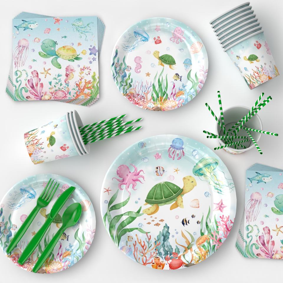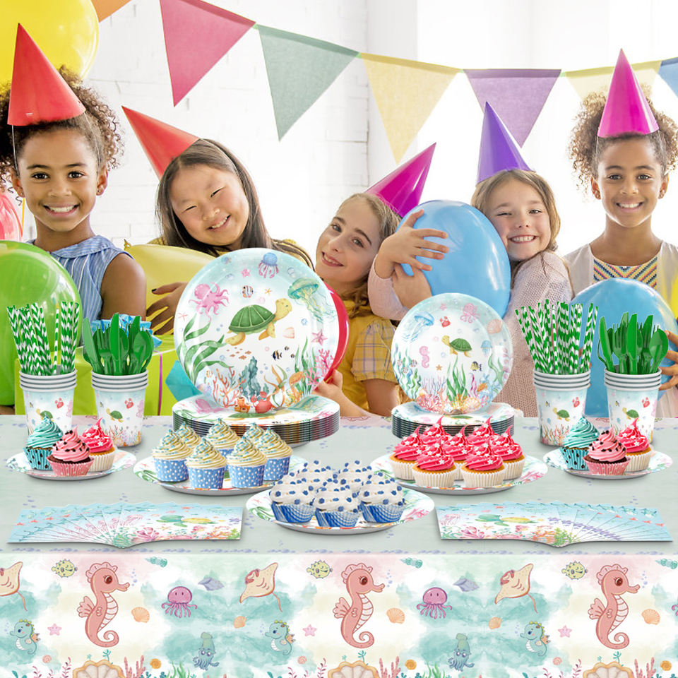 Vaisselle jetable en papier sur le thème des dauphins pour les fêtes d'anniversaire