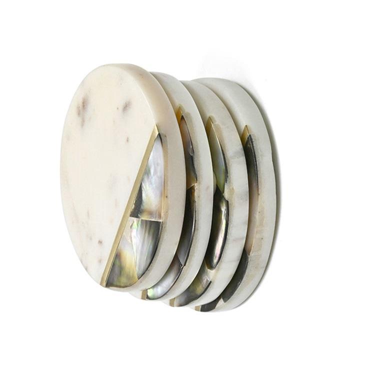 Vente chaude Moderne Rond Blanc Marbre Café Sous-Verre avec Bande De Laiton et Perle Design Élégant Abordable Décor À La Maison Inde