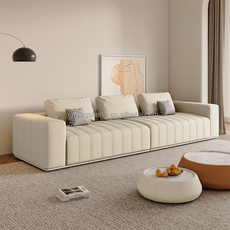 Canapé moderne simple à rangée droite en cuir pour salon avec cadre en bois massif Vente populaire