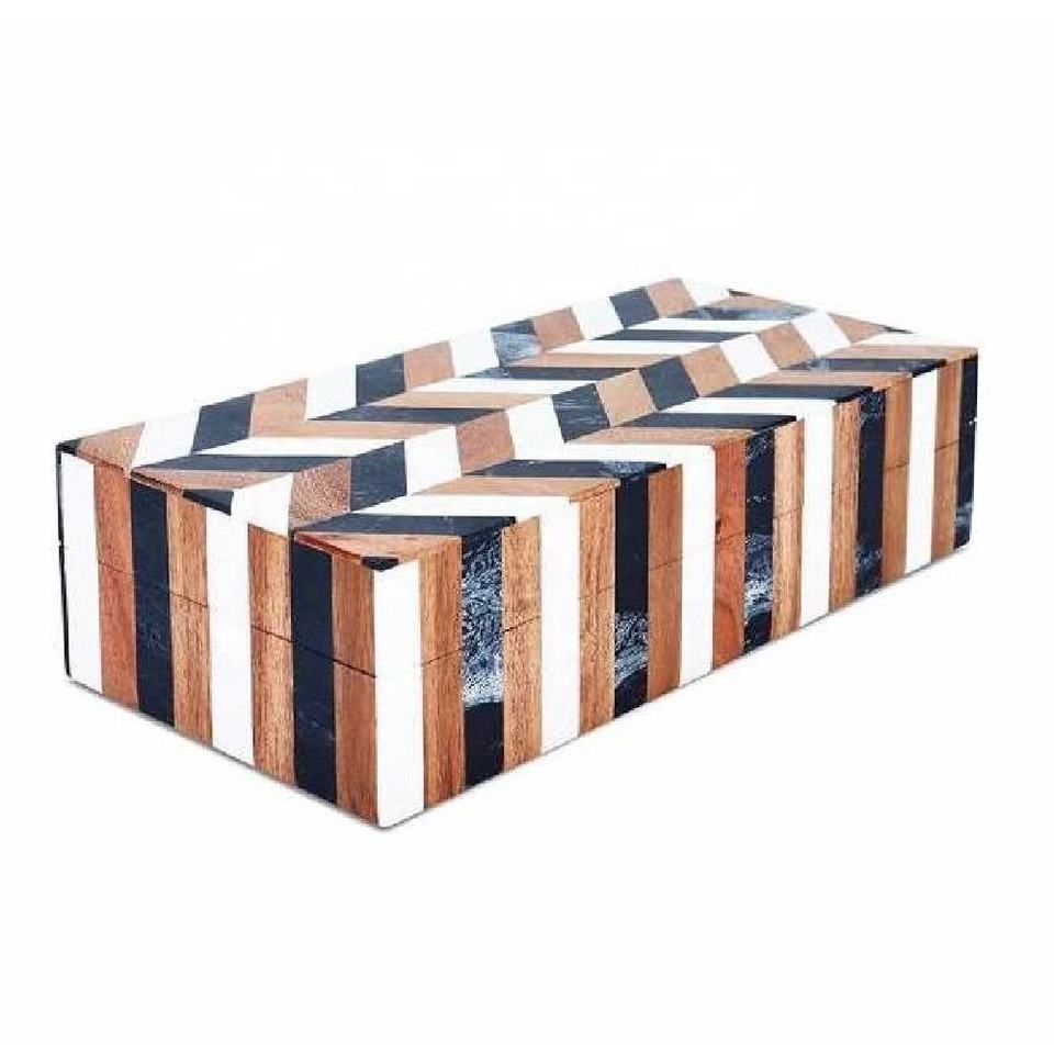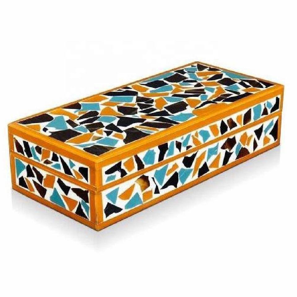 Vente chaude Moderne Boîte De Rangement En Bois À La Main Résine Incrustation Mosaïque Bijoux Organisateur Nouveauté Souvenir Boîte avec Touche Décorative