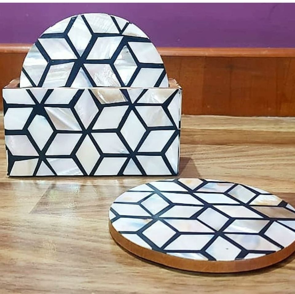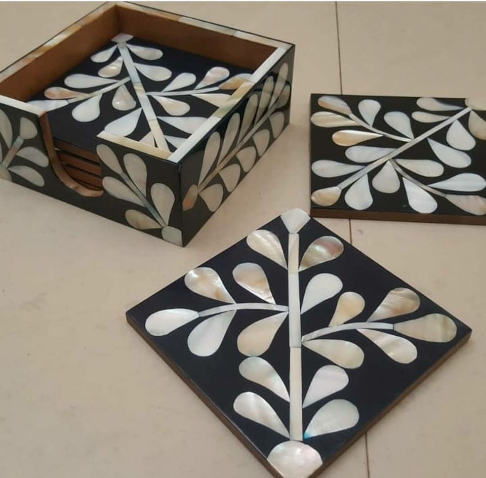 Ensemble de dessous-de-verre rectangulaires en nacre de luxe faits à la main, 4 pouces, nouveau modèle, écologique, facile à utiliser, pour la maison