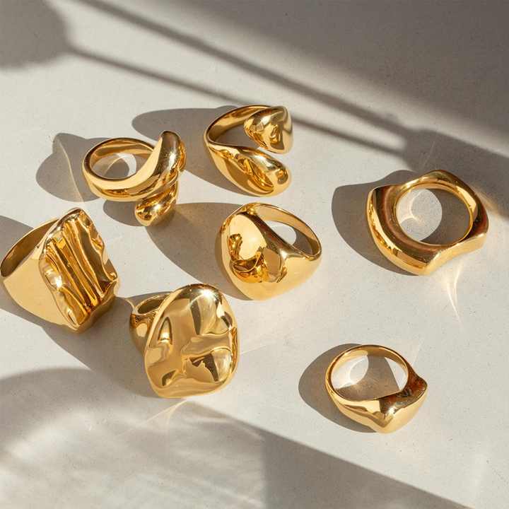 Bagues personnalisées multi-styles plaquées or 18 carats, étanches, en acier inoxydable pour femmes, vente en gros, offre spéciale