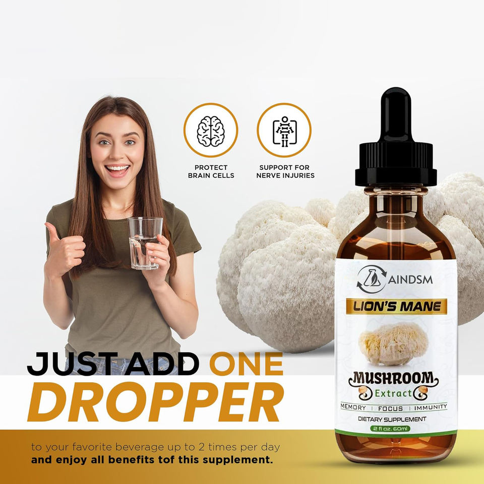 Gouttes liquides de soutien immunitaire aux champignons, complexe de champignons naturels, gouttes liquides de désintoxication aux champignons Lion's Mane, vente chaude