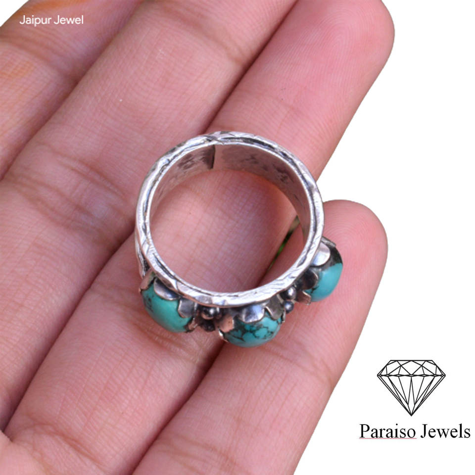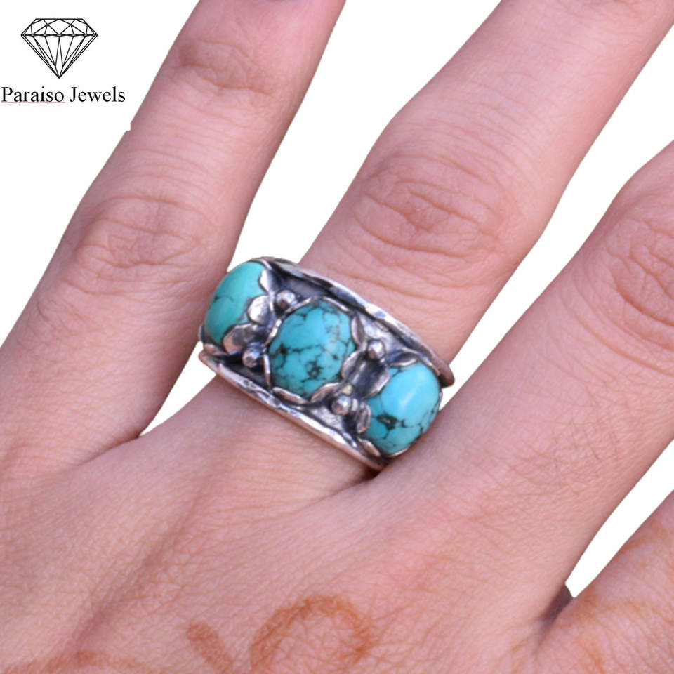 Vente chaude Naturel Bleu Turquoise Anneau 925 En Argent Sterling Plaqué Anneau En Gros Bleu Turquoise Anneau