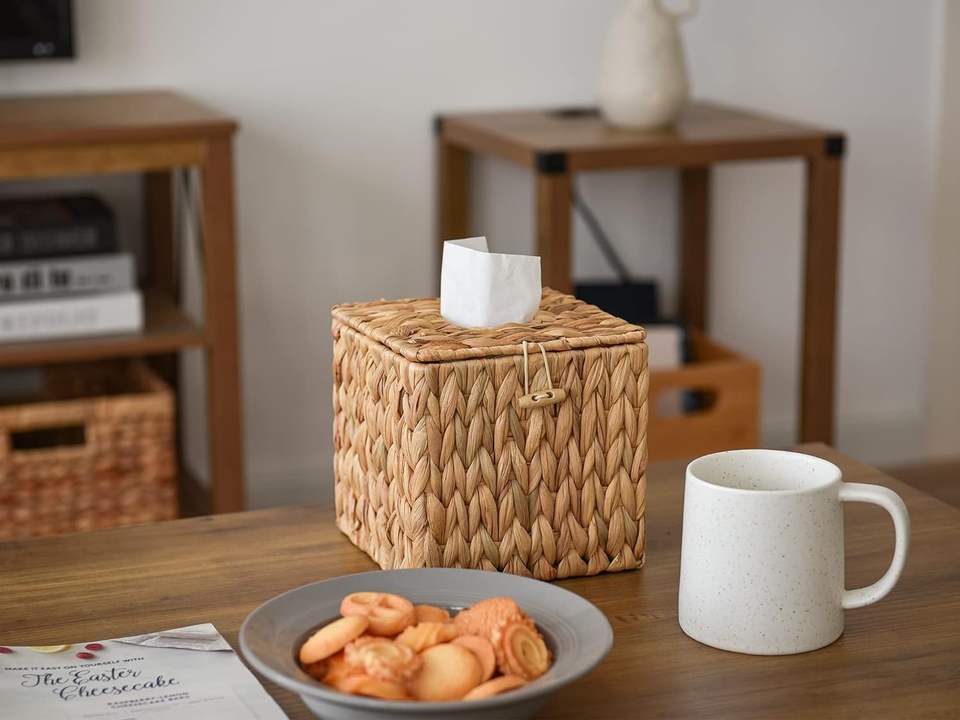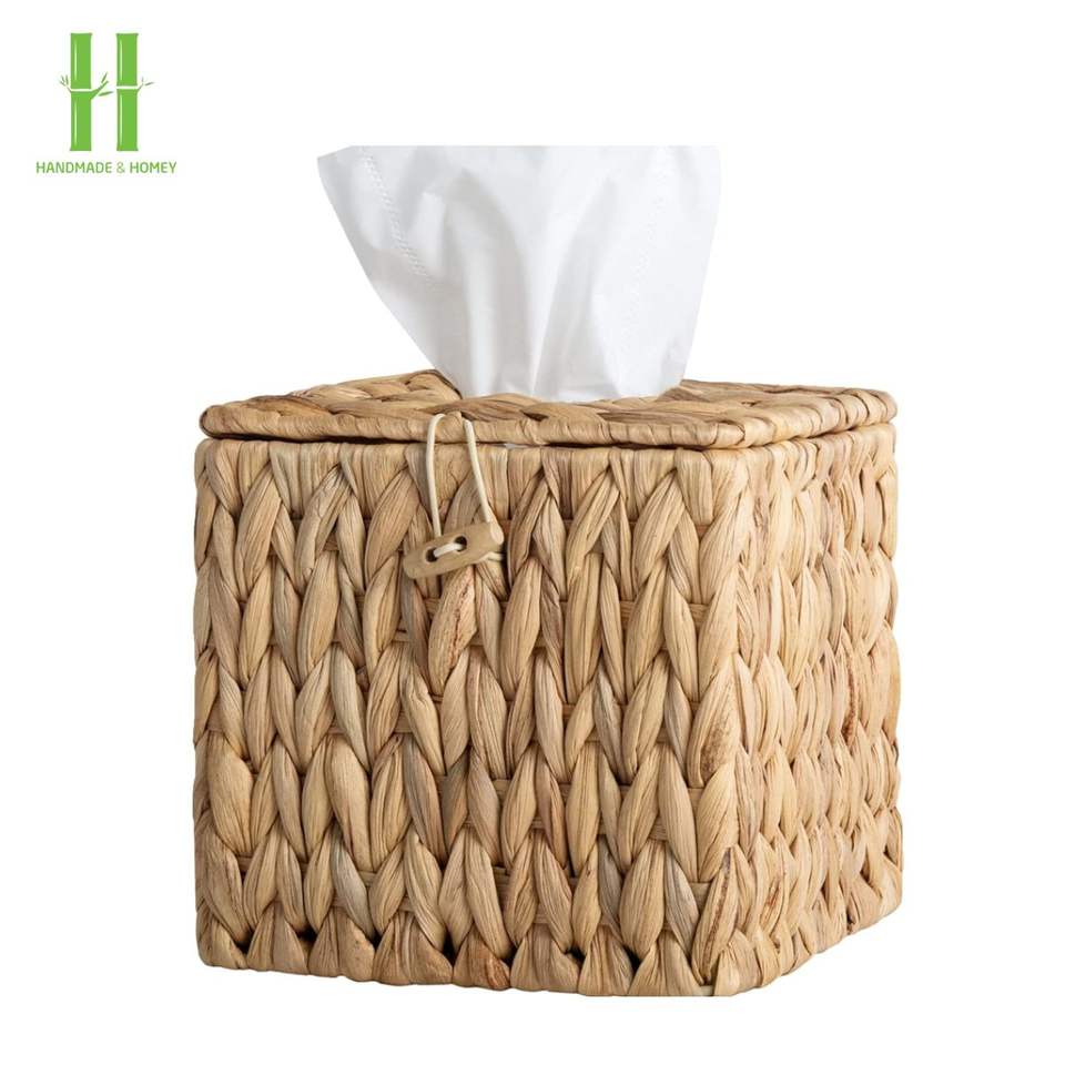 Hot Selling Natural Eco-Friendly Handmade Bamboo Luxury Beige Tissue Box Customized Packing Water Hyacinth Decoration Made