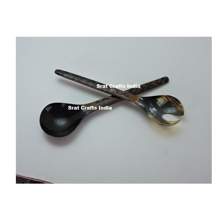 Hot Selling Natural Horn Salad Server Set Light Weighted Kitchen Accessories Serving Spoon and Fork for Home Catering