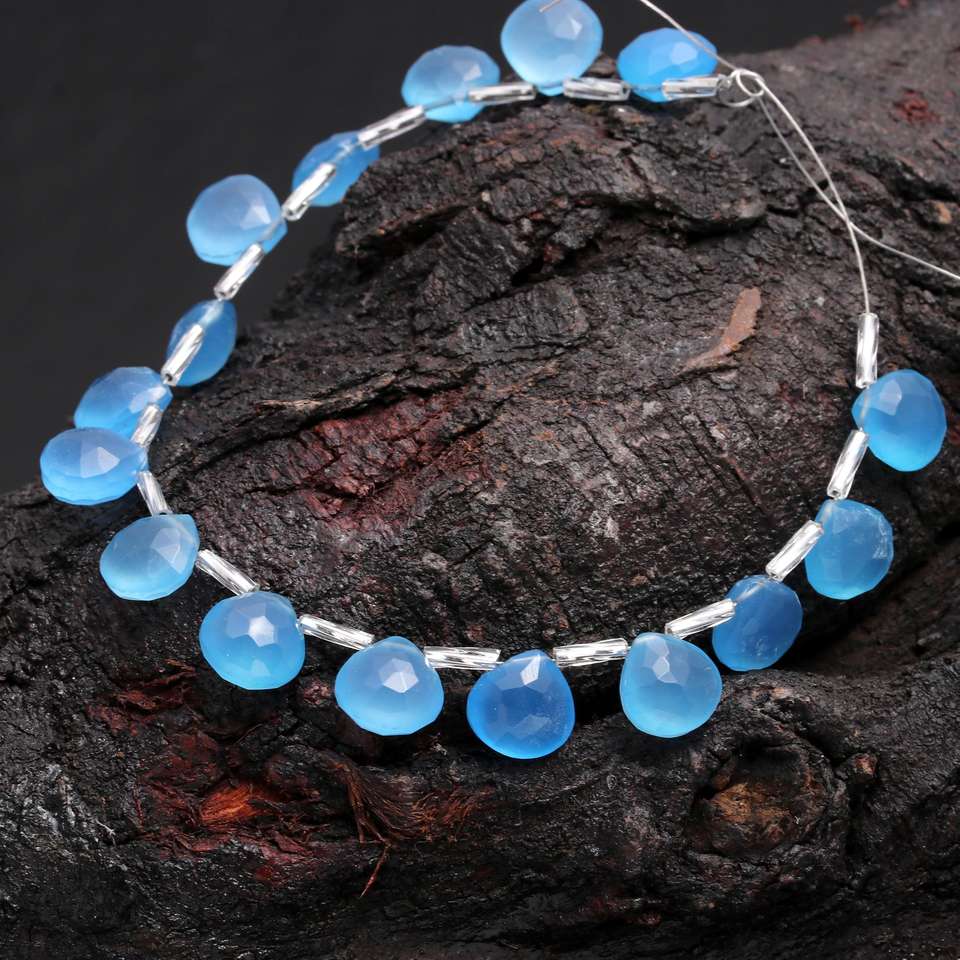 Vente chaude Naturel Océan Bleu Coeur Forme Calcédoine Briolette Perles Belle Bleu Gemme pour la Fabrication de Bijoux et Artisanat