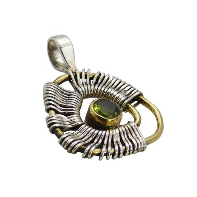 Hot Selling Natural Peridot Gemstone Pendant 925 Sterling Silver Fashion Unisex Fine Jewelry Pendants & Charms